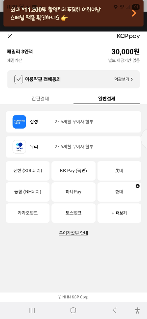장바구니에서 쿠폰 버튼을 클릭하면 사용 가능한 쿠폰 목록이 자동으로 보여집니다. 쿠폰을 적용한 후 신용카드, 카카오페이, 삼성페이, 네이버페이 등 원하는 결제 수단을 선택하고 결제를 완료하세요.