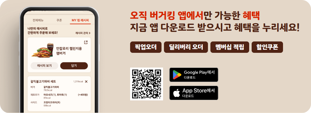 이제 줄 서지 말고, 버거킹 앱으로 스마트하게 주문하세요!