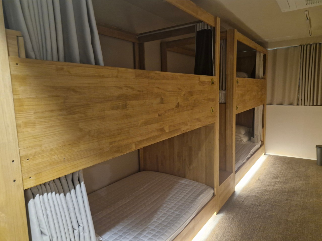 객실은 캡슐형 도미토리로 구성되어 있고, 1실당 4인 구성입니다. 저는 위층을 배정받았는데요, 아래층과 간섭이 거의 없어 프라이버시도 꽤 보장됩니다.
