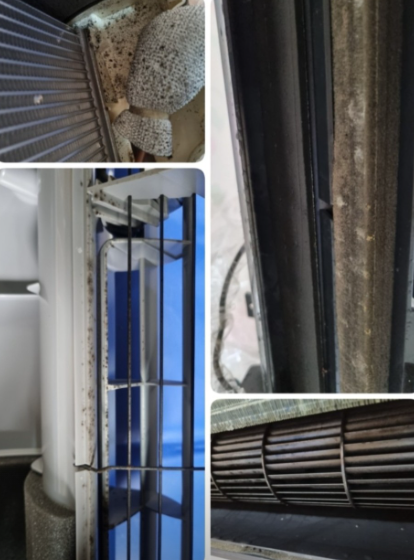 < 청소전 에어컨속 곰팡이 >